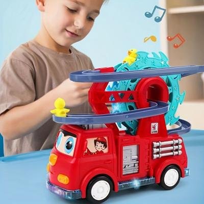 لعبة شاحنة إطفاء 4 في 1 مع صوت وضوء تقدم لك الحل المثالي! 🌟