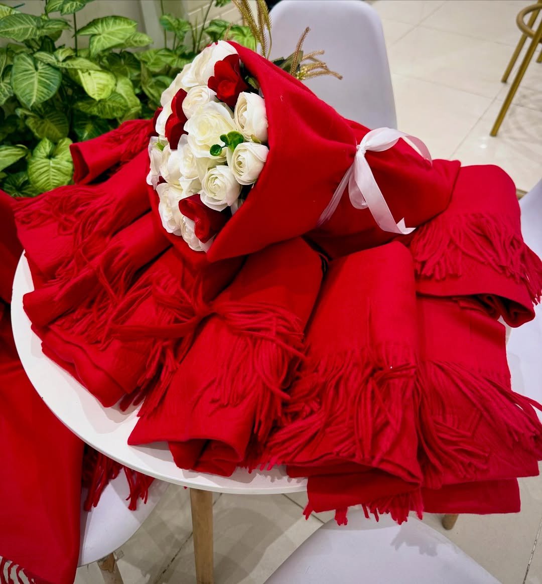 شال Mikasa الفاخر + 18 وردة أنيقة